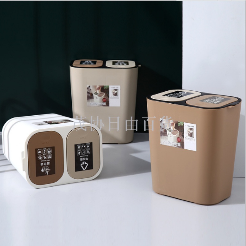 trash can household press type dry wet separation shanghai garbage can for life double lid kitchen japanese classification trash can