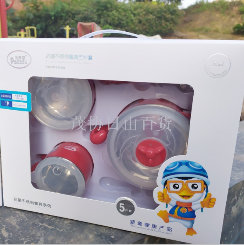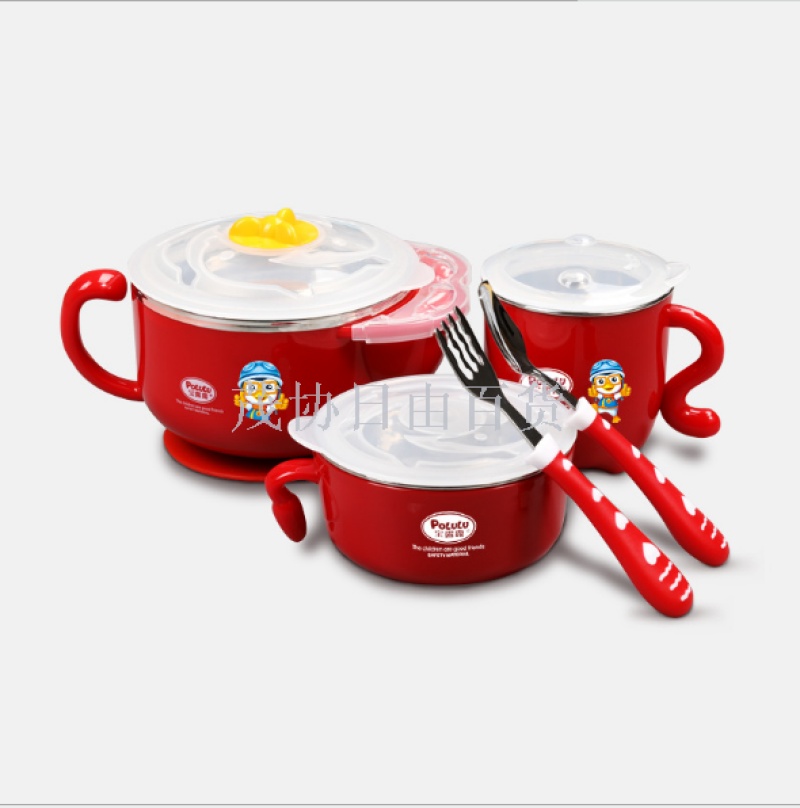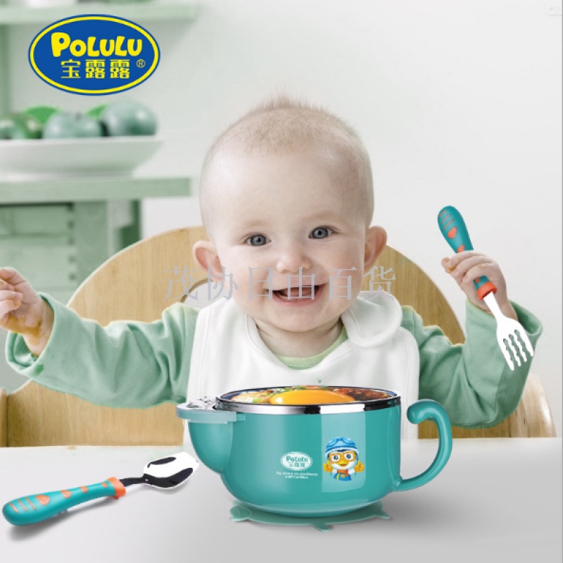 pororo stainless steel water injection thermal insulation bowl infants baby feeding bowl set snack catcher drop-resistant boiled