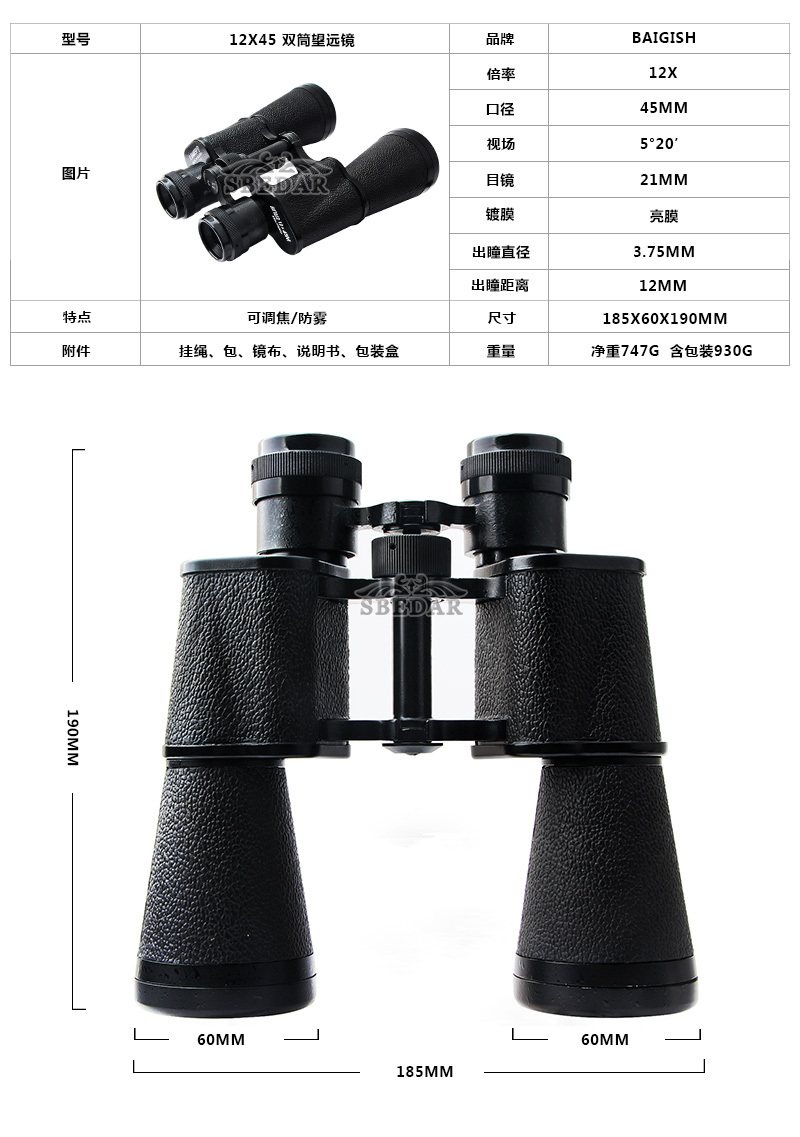 | 12x45 binocular adjustment | ¥280.0 | 1111 piece available |