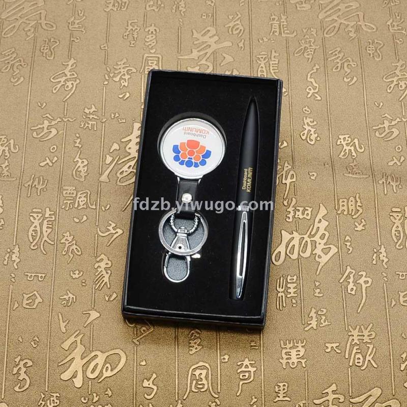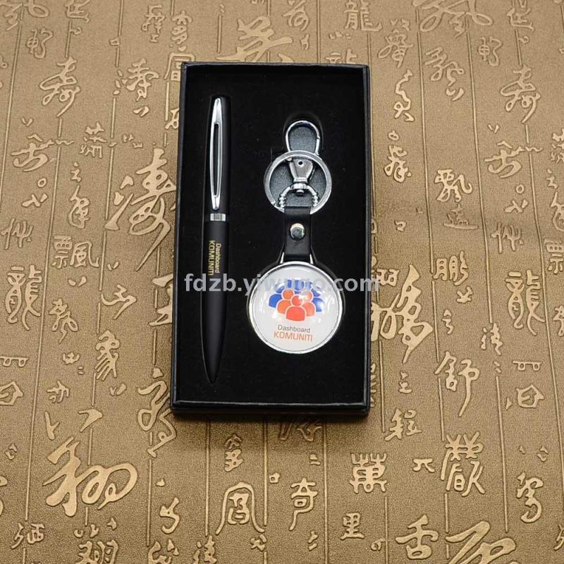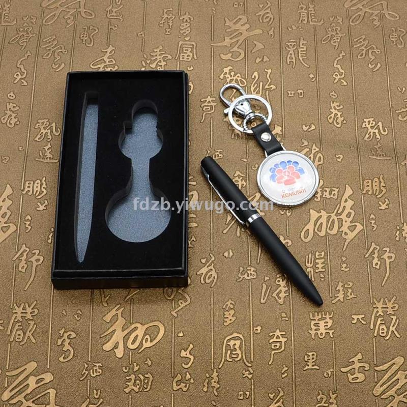 Drip oil key chain set business office gift metal ballpoint pen + key chain gift set 中文版