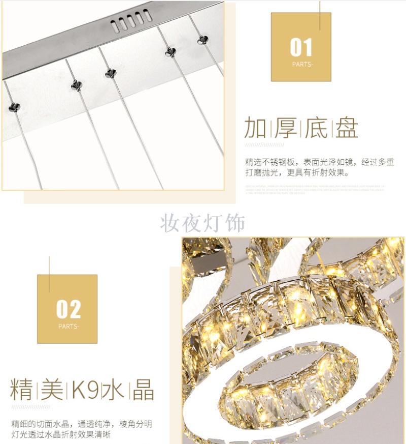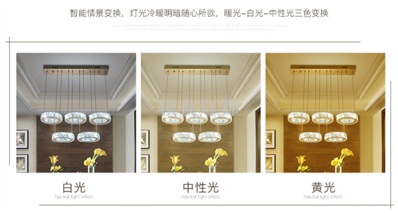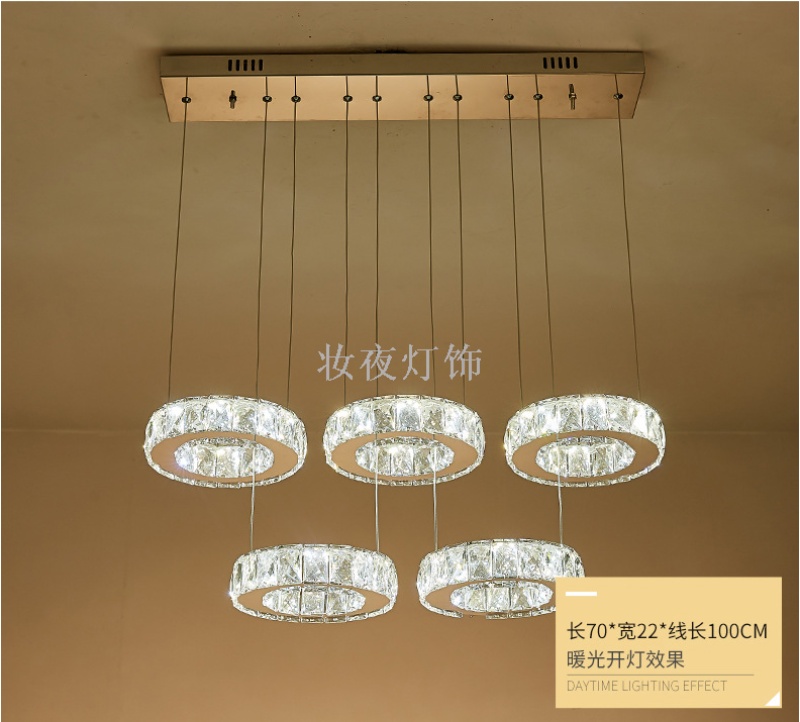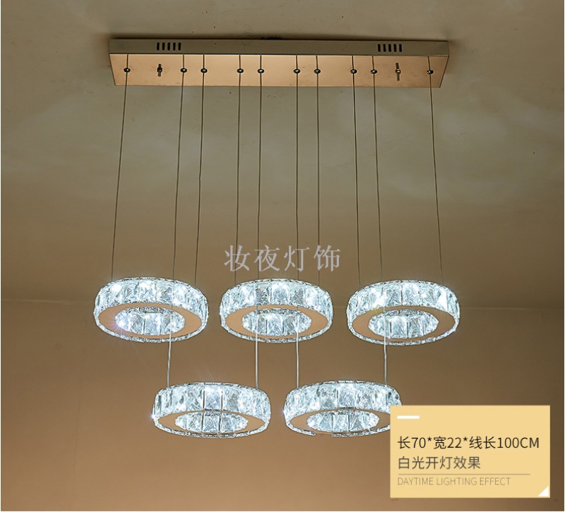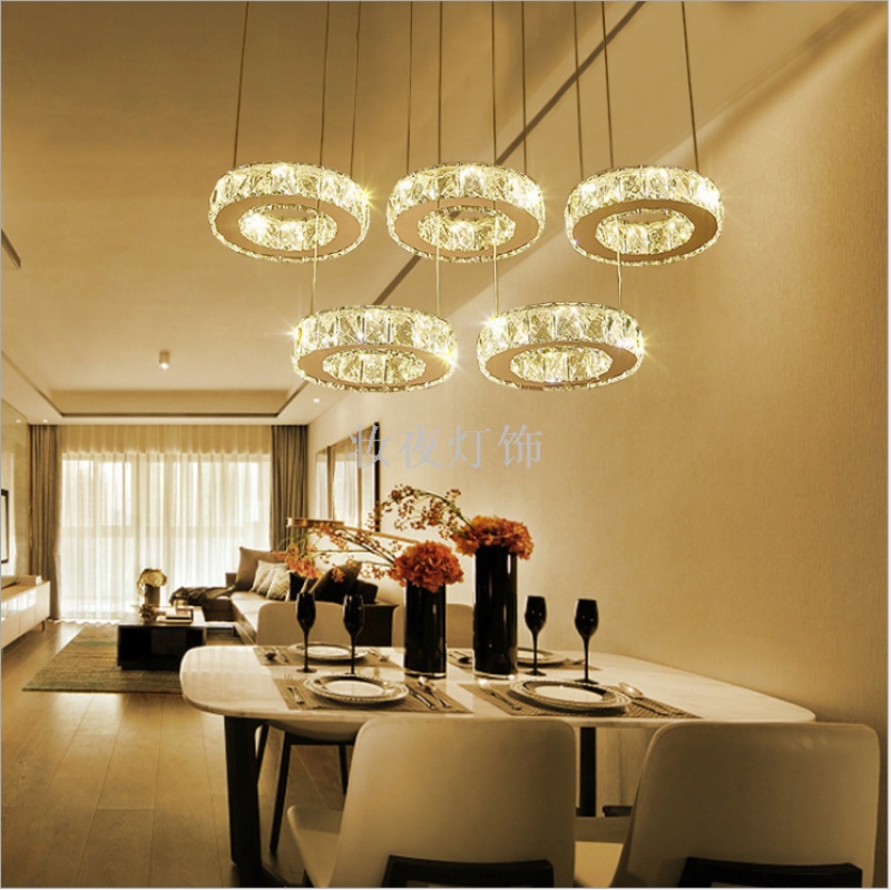 five-head dining-room lamp creative majestic crystal lamp round dining room three-end ceiling lamp dining-room lamp led ring bedroom light 中文版