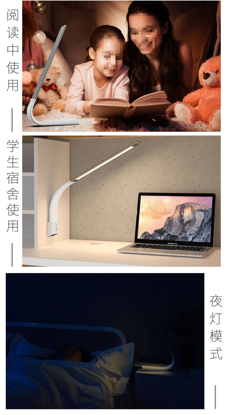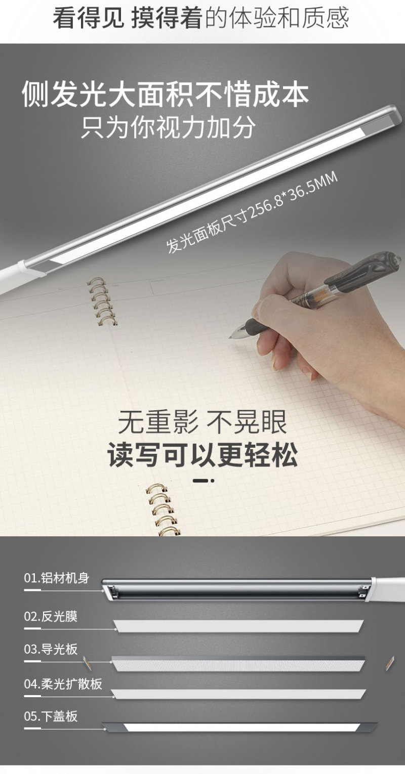 2. Adopt the light technology of semiconductor surface light source, the light is more eye protection, more comfortable, softer, more portable, no stroboscopic, ultra-low blue light