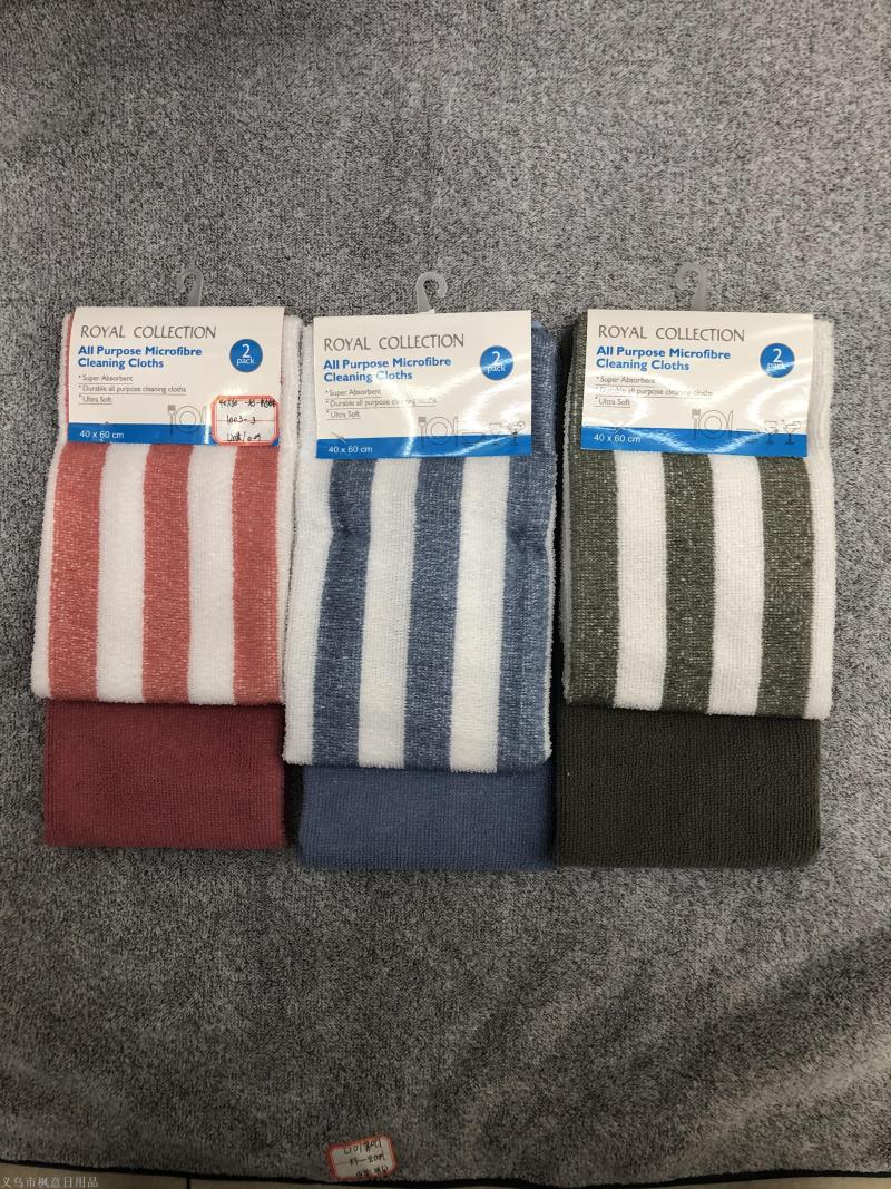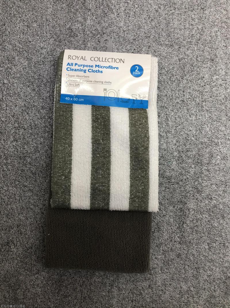 [fengyi] factory direct sales microfiber stripes + plain set kitchen cleaning cloth car wash towel 中文版