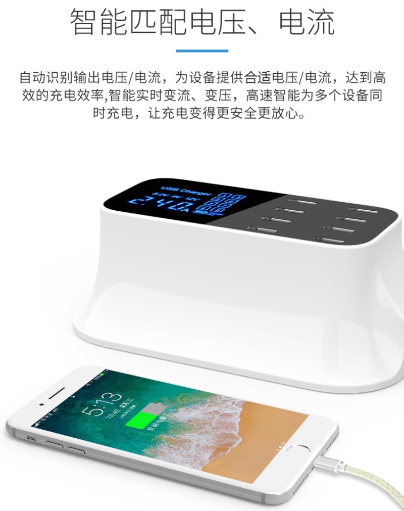 8 port USB mobile phone charger LED real-time current full 8000MA8USB quick charge multi-port digital display charger..