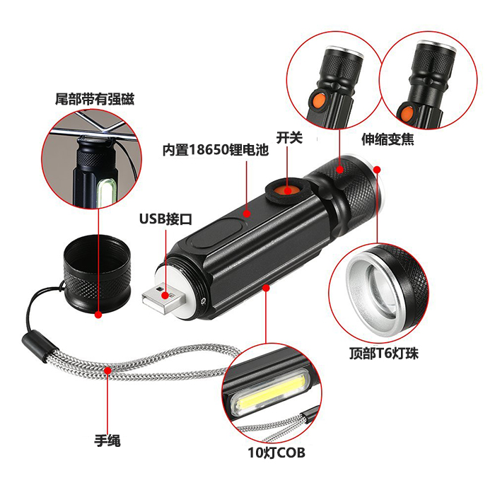| black cob lamp + magnet t6 lamp beads | ¥17.0 | 63527 only available |