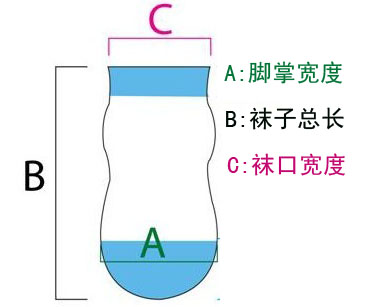 S号 袜口宽度2.5cm 袜身长度6cm 脚 掌处 宽度3cm M号 袜口宽度3cm 袜身长度7.5cm 脚掌处宽度3.5cm L号 袜口宽度3.5cm 袜身长度9cm 脚掌处宽度4cmcm XL号 袜口宽度4cm 袜身长度11cm 脚掌处宽度4.5cm |