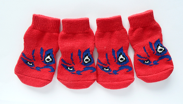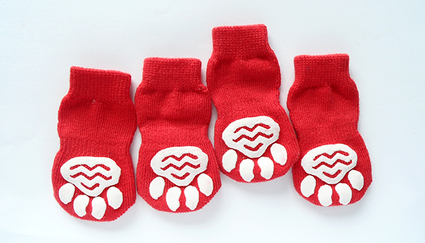 经典小狗宠物袜子-采用棉线制作,合适于中小型狗,让狗狗可以在家里自由行走,并且防止刮花地板。