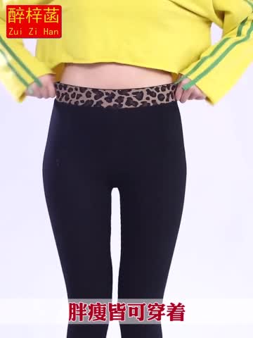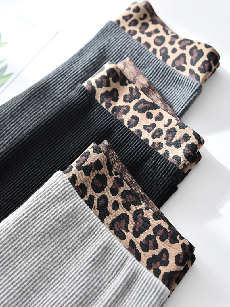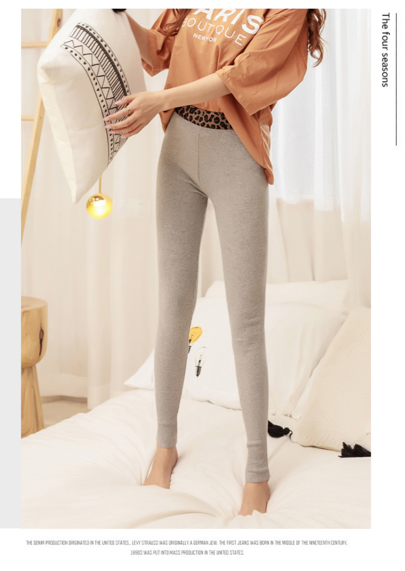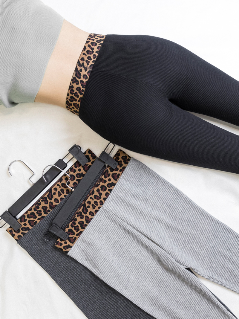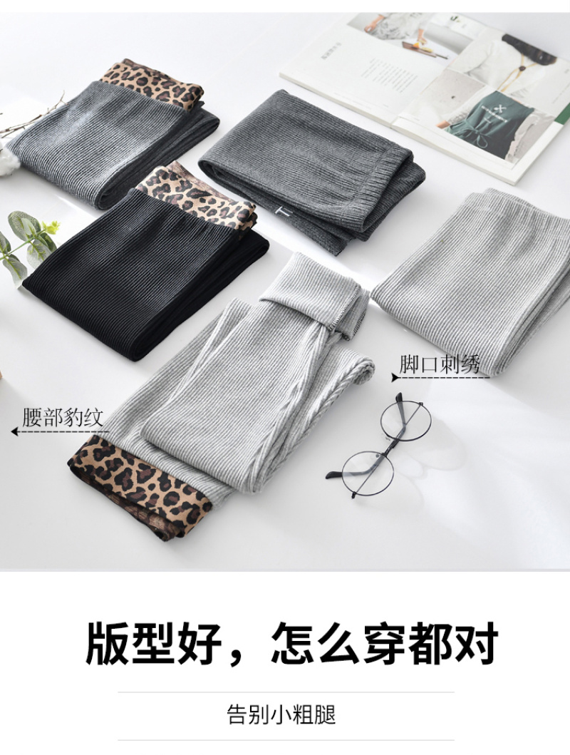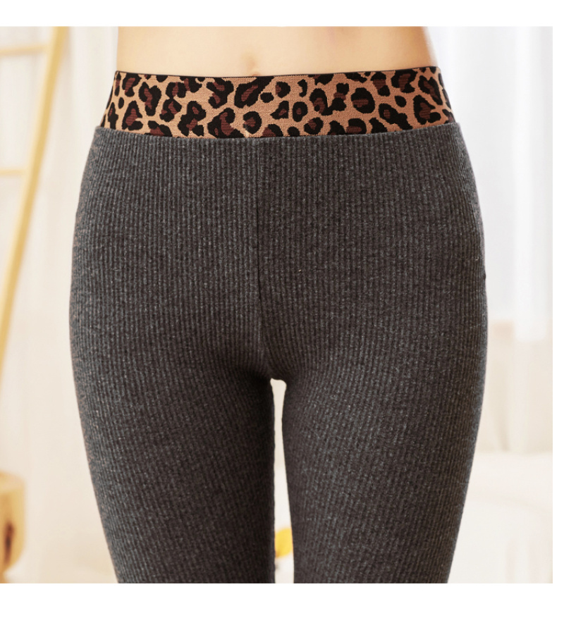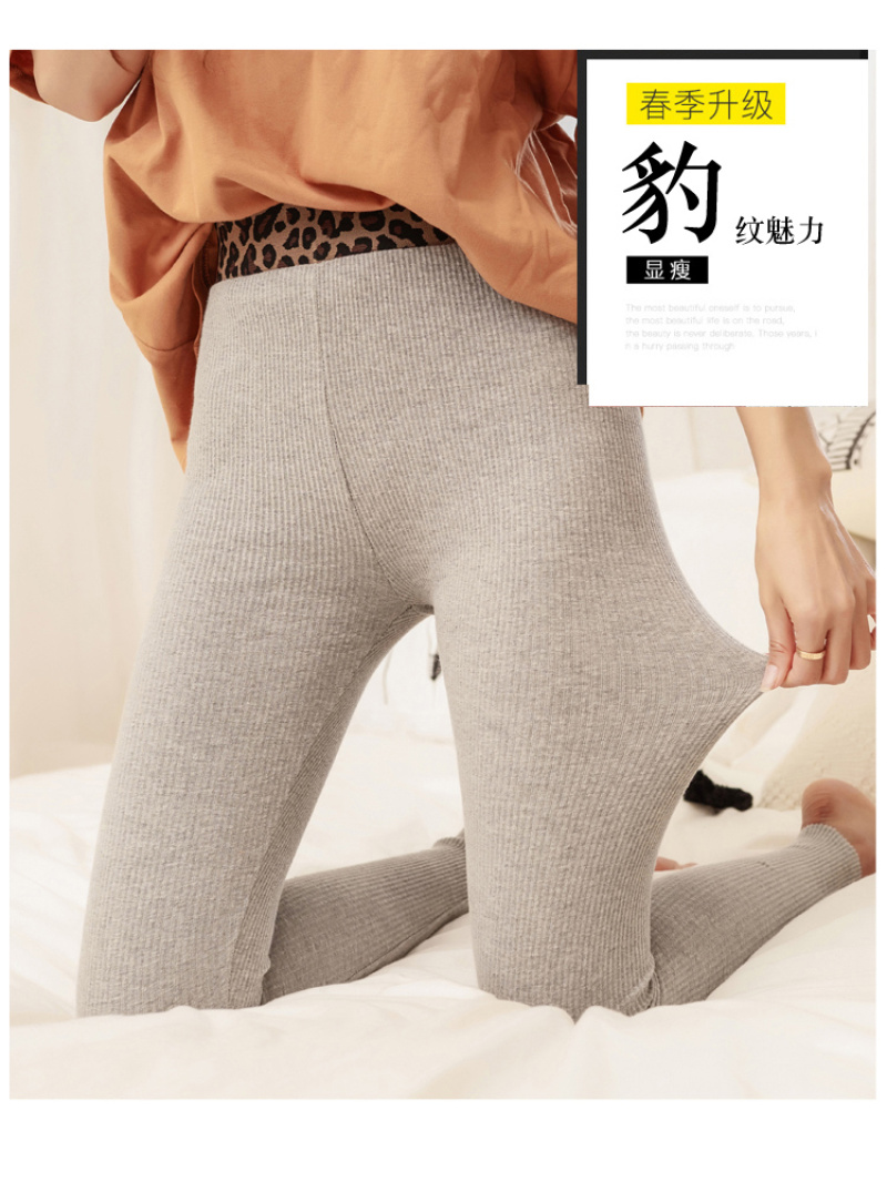 Spring 2020 Leggings Women's Outer Wear Thin Vertical Thread Gray Leopard Print Waist Cropped Skinny Long Johns Women