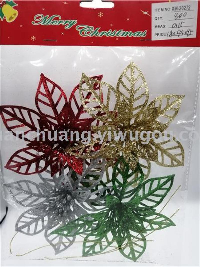 Christmas flowers, Christmas butterflies, Christmas decorations, Christmas decorations, gold powder plastic flowers