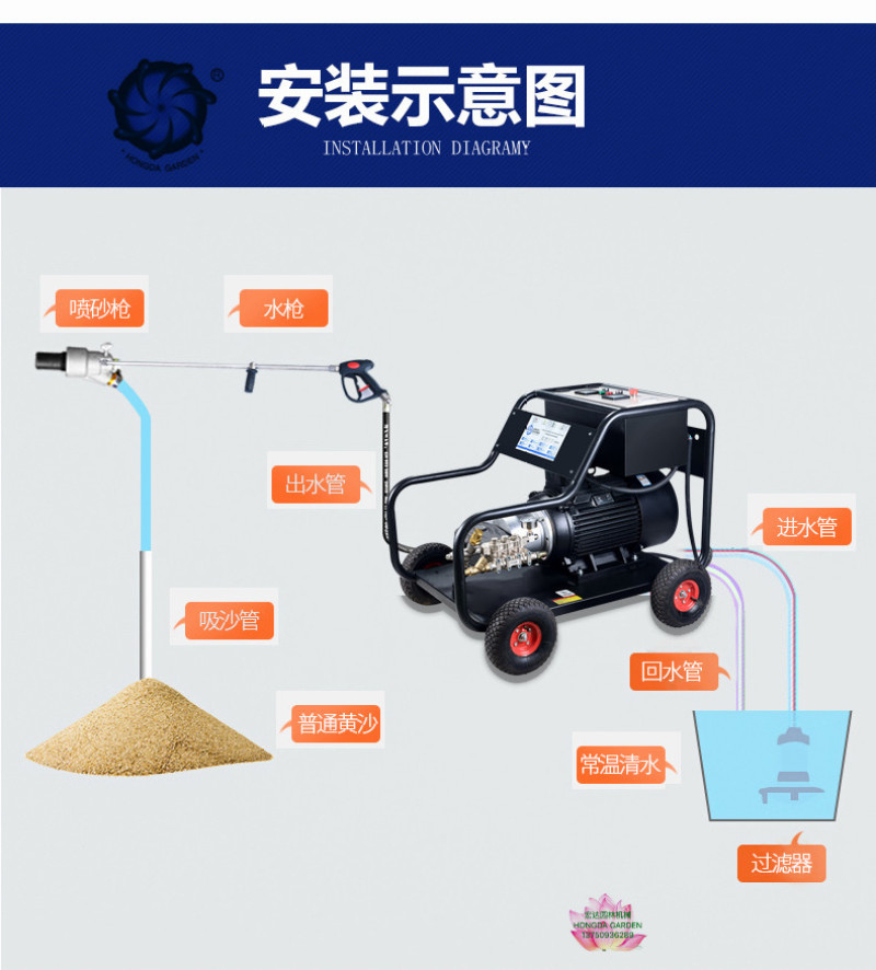 ultra-high pressure 500kg pressure cleaning machine paint removal water sand blasting rust removal industrial grade high pressure water equipment 中文版