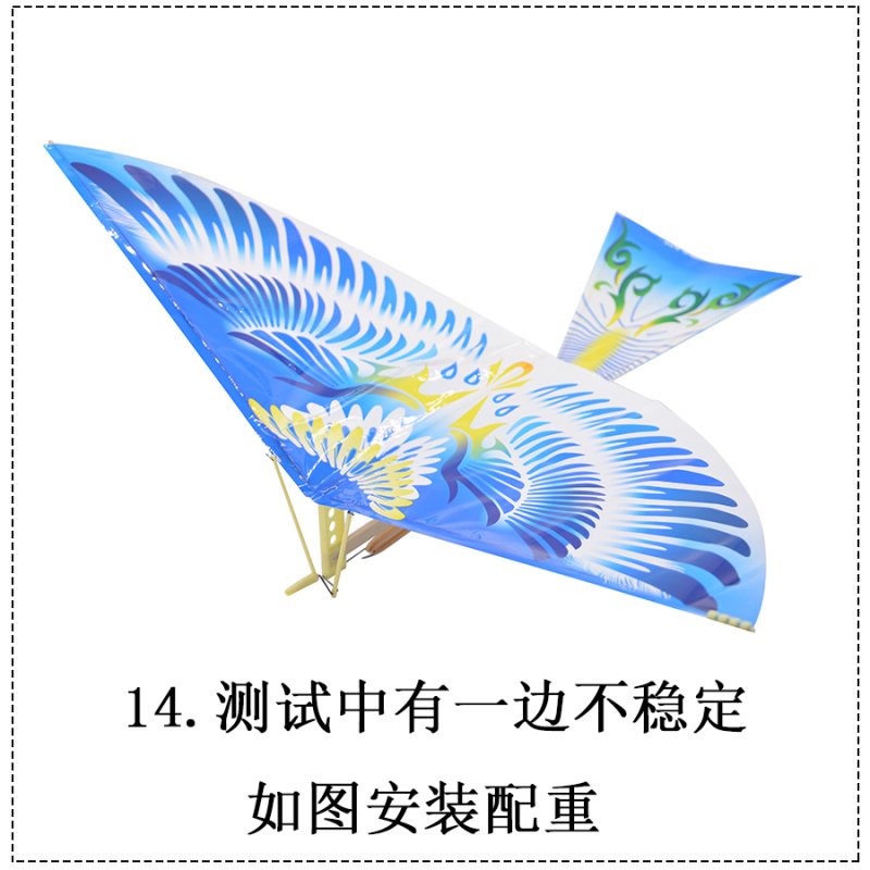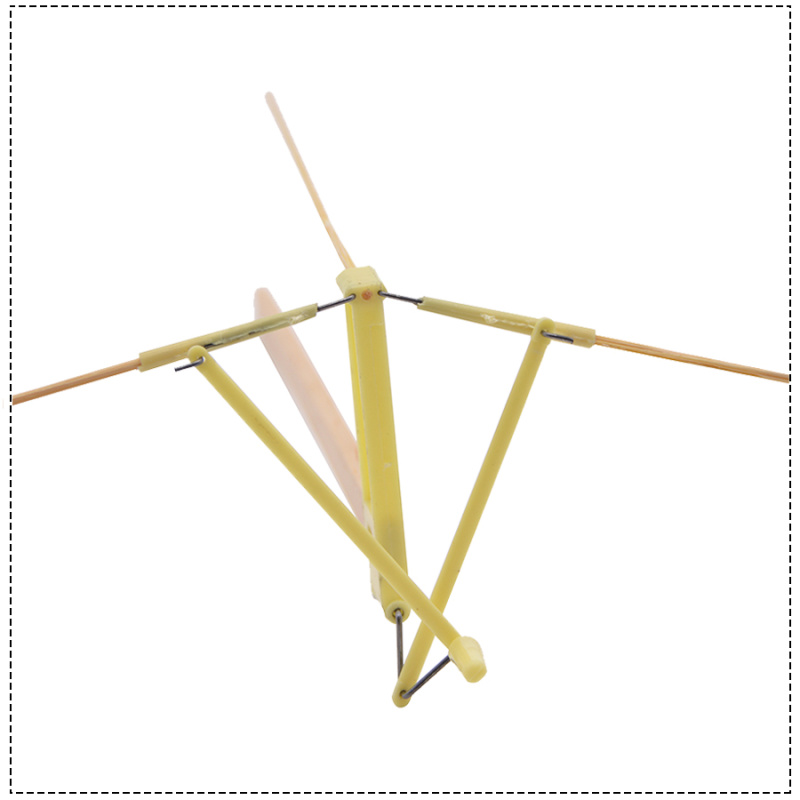 This is a paper bird that imitates the flight principle of a bird. It is powered by an elastic band, which drives a small crankshaft to rotate. The rotation of the crankshaft makes the wings move up and down, thus driving the paper bird to fly. Because the paper bird is light, the energy of the elastic band and the flapping of the wings are enough to make the bird fly into the sky and glide.