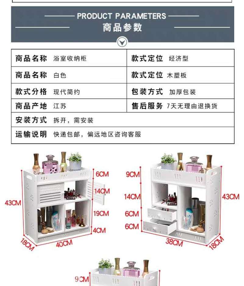 【Product Name】: Double Door Bathroom Cabinet 0.8/0.5 【Product Model】: ZW2843 ZW2844 【Product Size】: 43*38*18 【Product Material】:High-density Fiberboard (MDF)