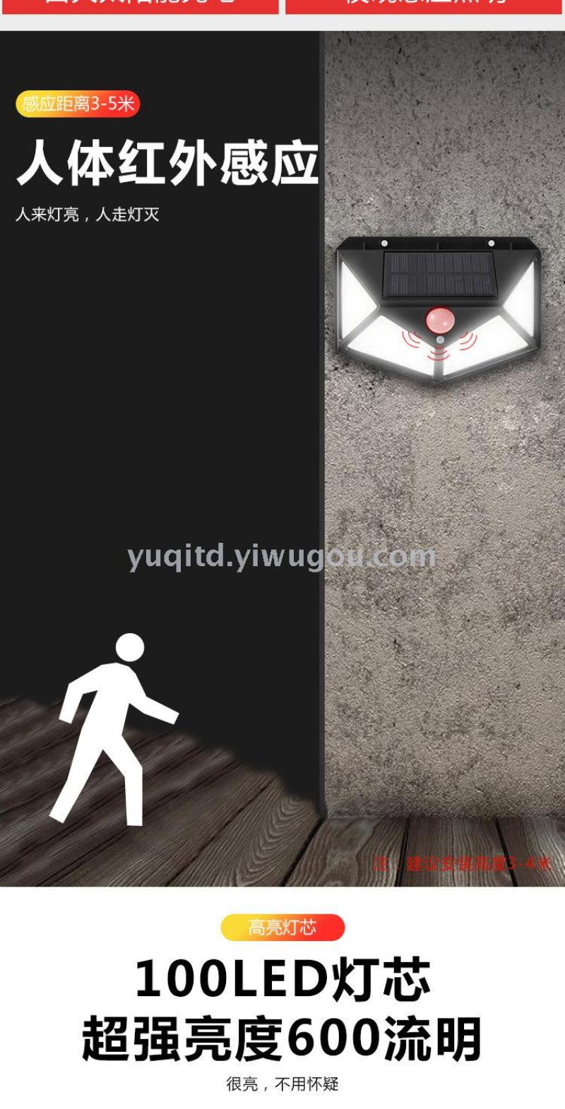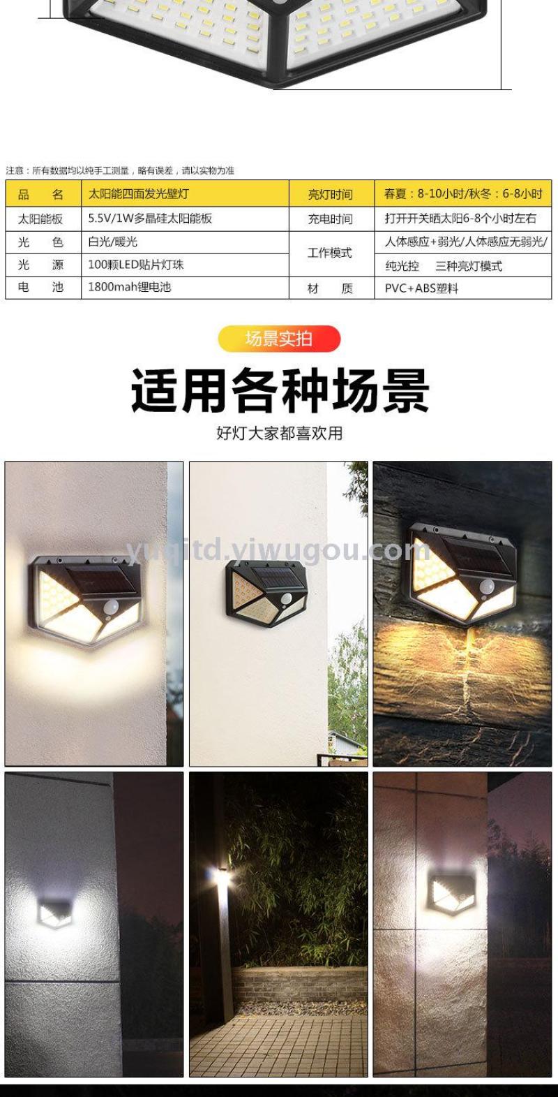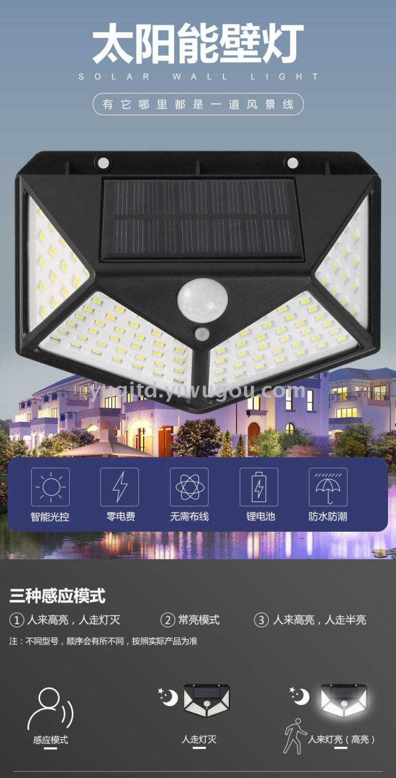 100led solar wall lamp garden lamp all sides luminous solar lamp human body sense lamp street lamp