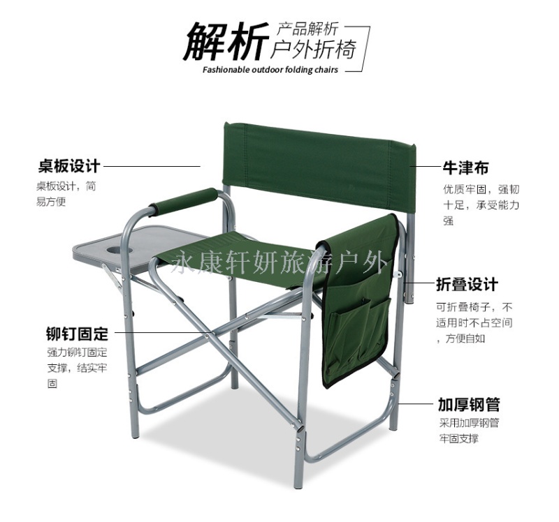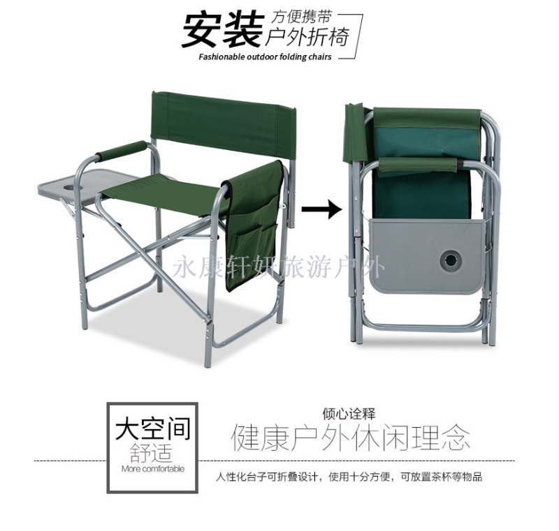 About Product:Outdoor beach chair iron director chair folding chair with magazine bag tea board multi-function director chair with table iron director chair plus table plus bag