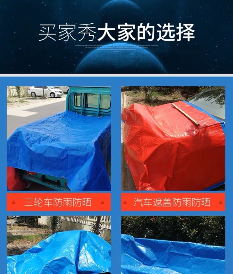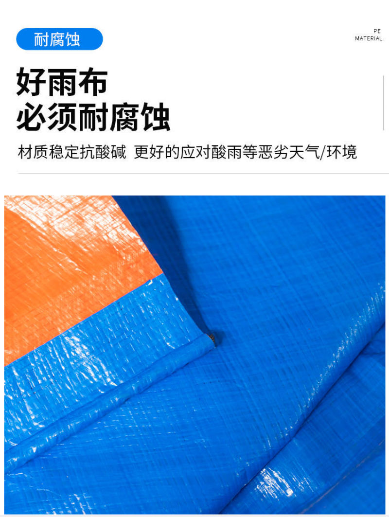 PE tarpaulin outdoor plastic cloth rainproof cloth, sunshade, sun protection and heat insulation awning long resistance to the sun, antioxidant. It is waterproof, mildew proof, cold resistant and aging resistant. Easy to carry. Adopt high temperature thermal bonding technology, two sides coated with oil waterproof layer