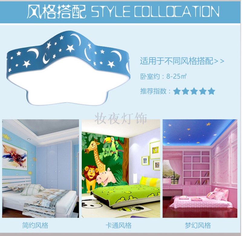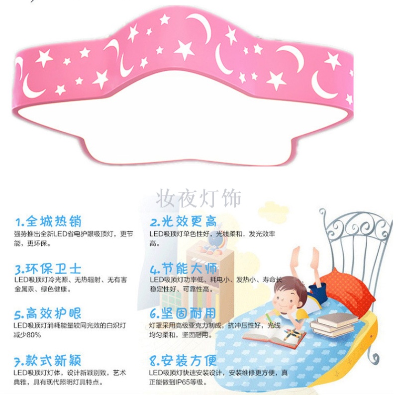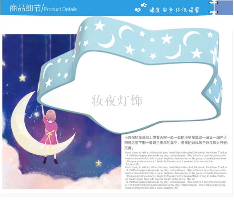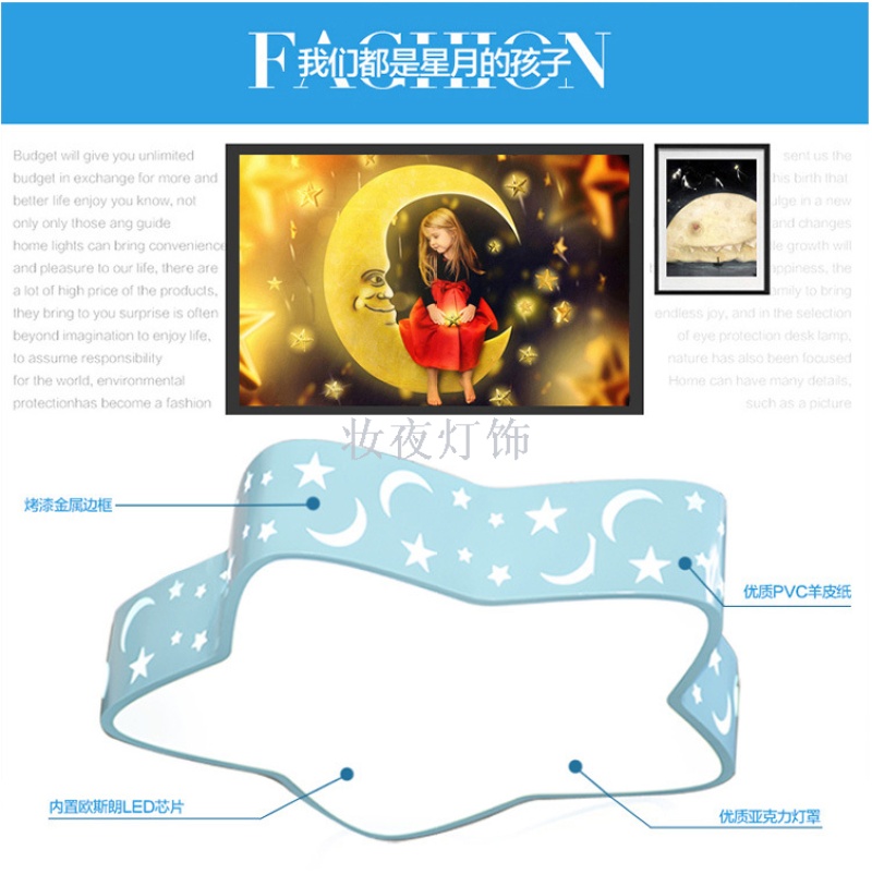 creative star moon children's bedroom led ceiling light cartoon ceiling light warm children's room eye protection ceiling light 中文版