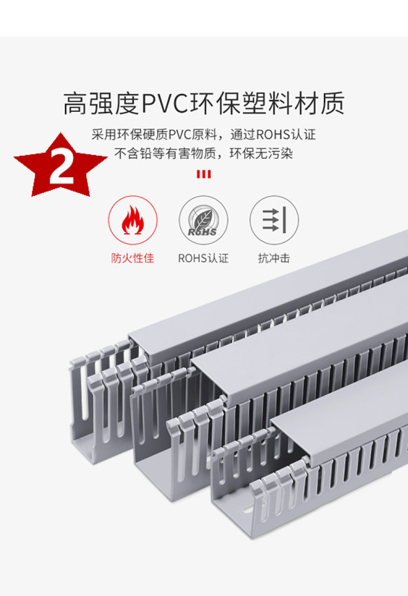 本产品在1200V及以下的电气设备中对敷设其中的导线起机械防护和电气保护作用。使用此产品后,配线方便,布线整齐,美观,安装可靠,便于查找、维修和调换线路。专业生产各规格PVC阻燃线槽,,