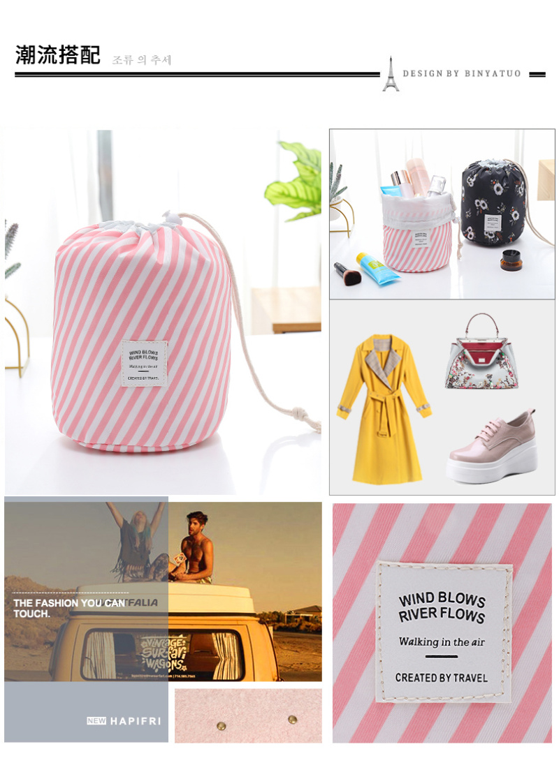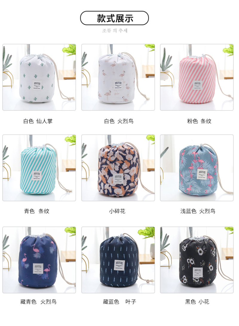 factory direct sales fresh cosmetic bag round barrel drawstring cosmetic storage wash bag organizing folders can also be customization as request 中文版