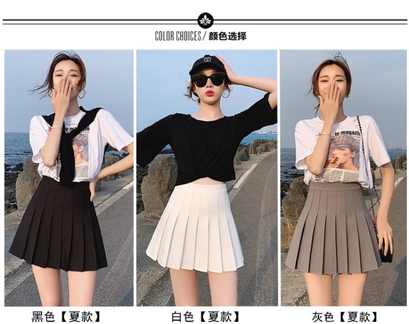 Women's summer skirt high waist tennis skirt thin black pleated skirt spring and autumn new skirt