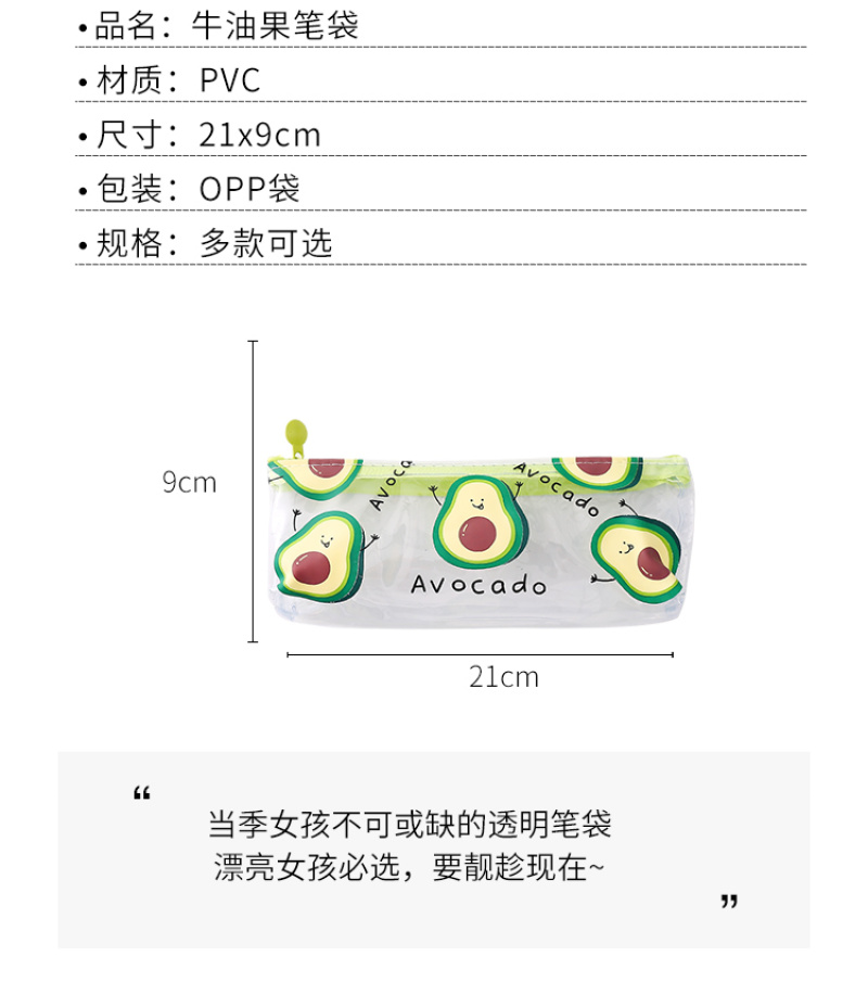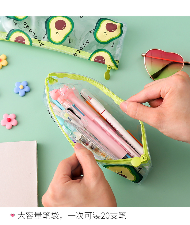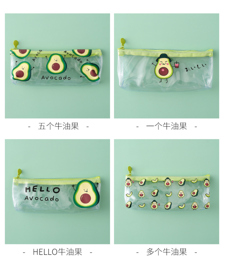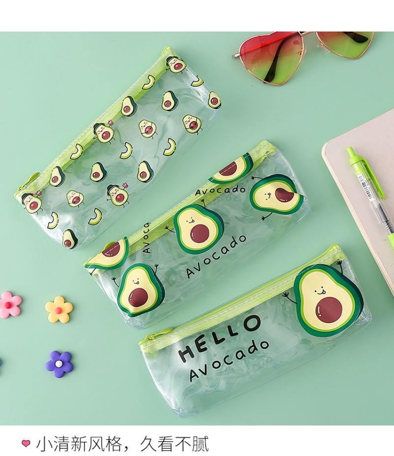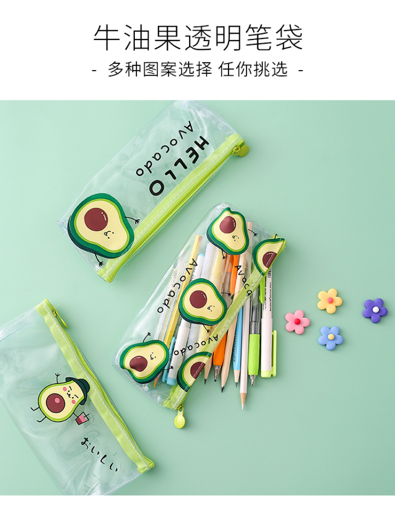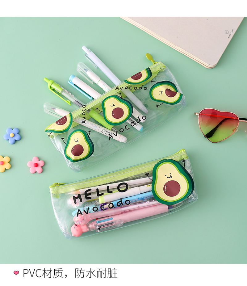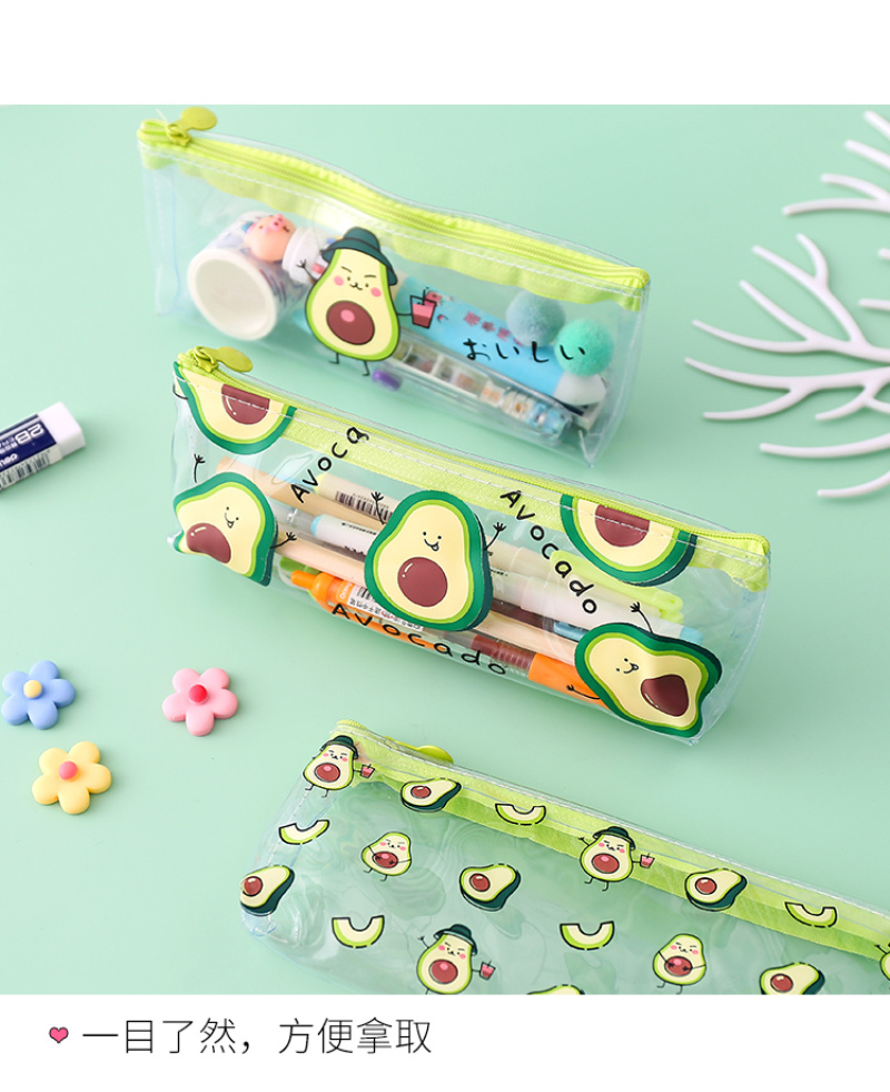 Transparent PVC pencil bag small fresh avocado pencil bag stationery bag cosmetic bag toiletry bag 中文版