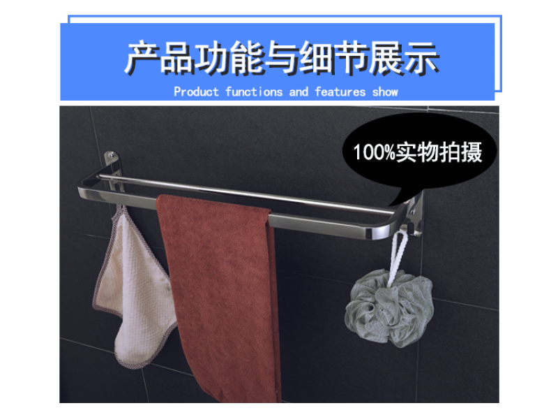 Stainless steel towel rod bathroom towel rack bathroom towel rack Hotel multi - functional towel rod double pole 中文版