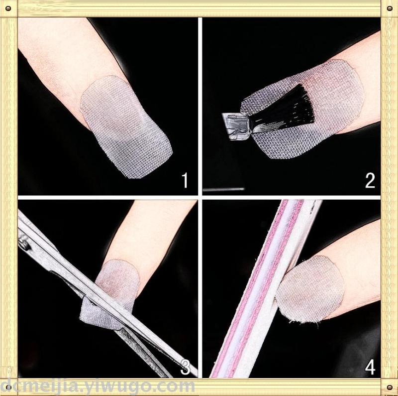 先剪成指甲大小的形状并磨光指甲,清洗后粘贴