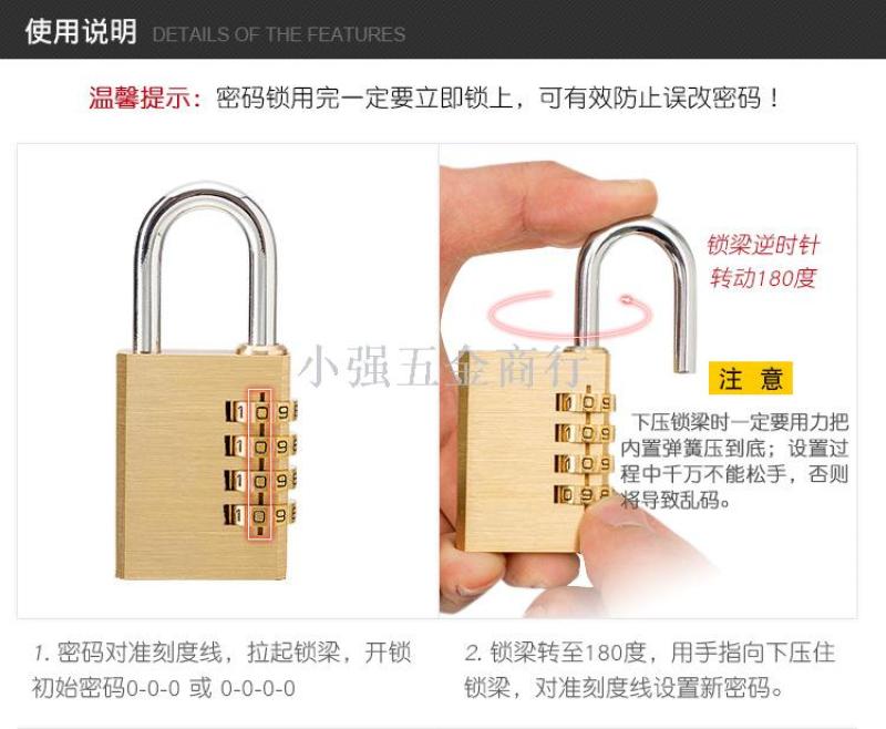Waterproof and rust proof solid brass combination lock padlock 4 bit small code padlock GT214 中文版