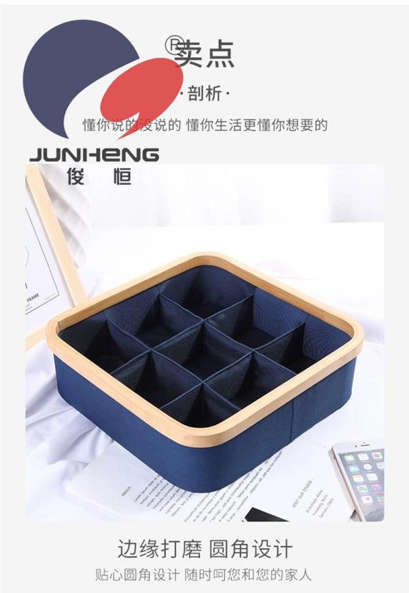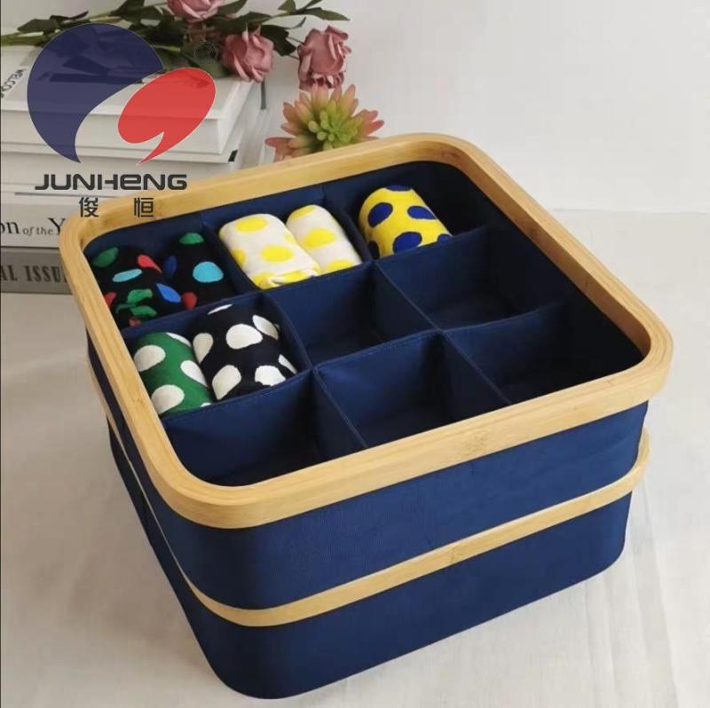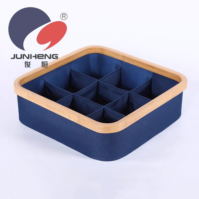 【Product Name】: A674 Nine-Compartment Storage Box 【Product Model】: A674 【Product Size】: 30*30*9 【Product Material】: Oxford cloth*Bamboo