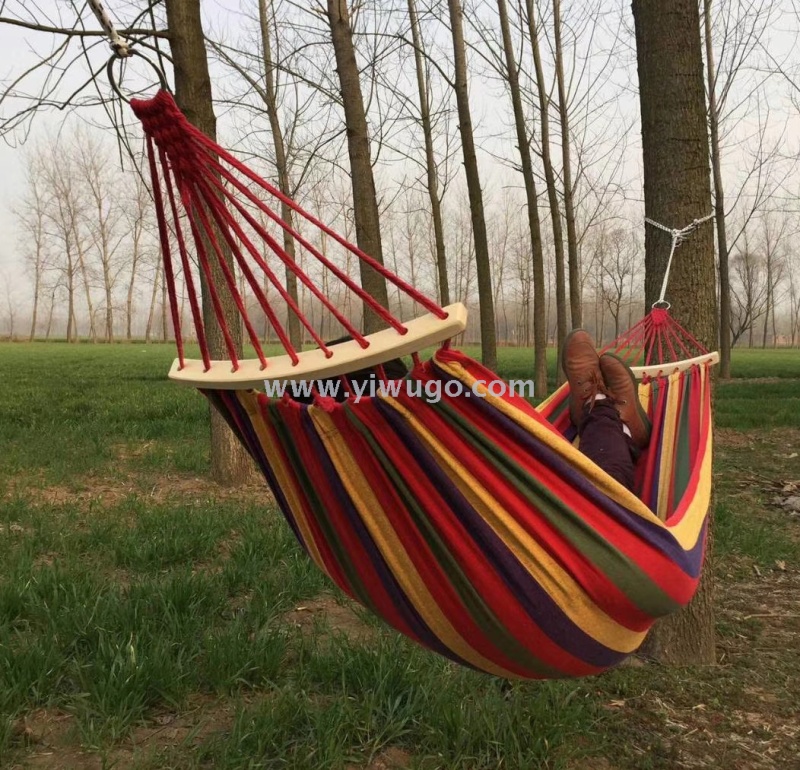 single 80cm hammock with wooden stick wholesale outdoor leisure canvas hammock in stock wholesale 中文版
