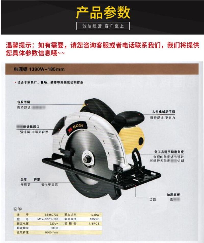 7-inch electric circular saw [plastic shell] bs660702 (1300w-185mm)