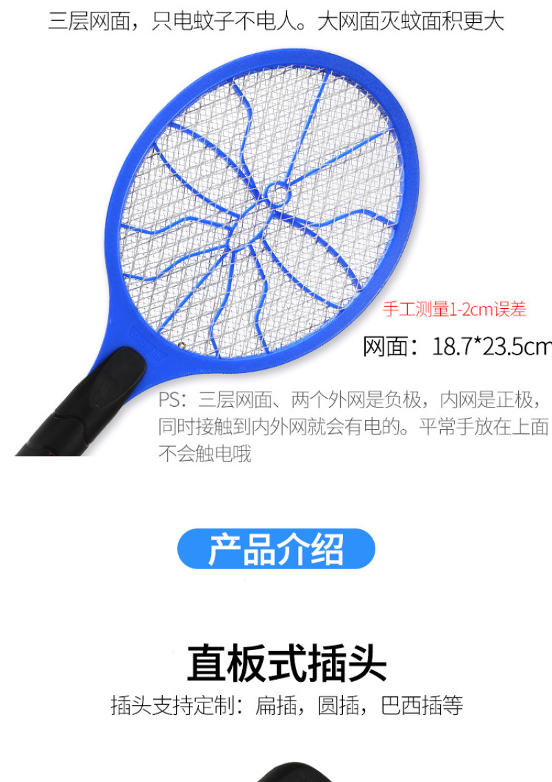 About Product:Manufacturer wholesale household powerful rechargeable large screen electric mosquito swatter mosquito swatter three-layer net