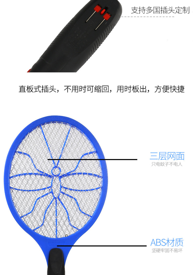 Household powerful rechargeable large screen electric mosquito swatter mosquito swatter three-layer net 中文版