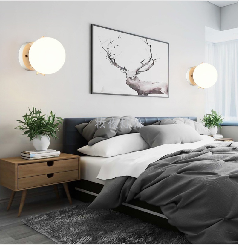 wall lamp bedside lamp wall bedroom simple modern creative ball european american living room led stairs aisle light 中文版