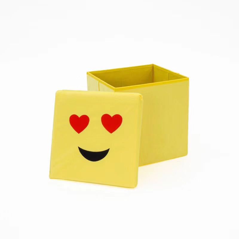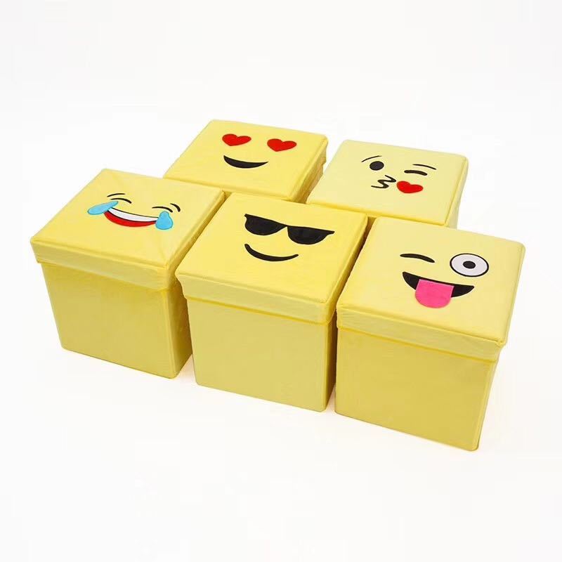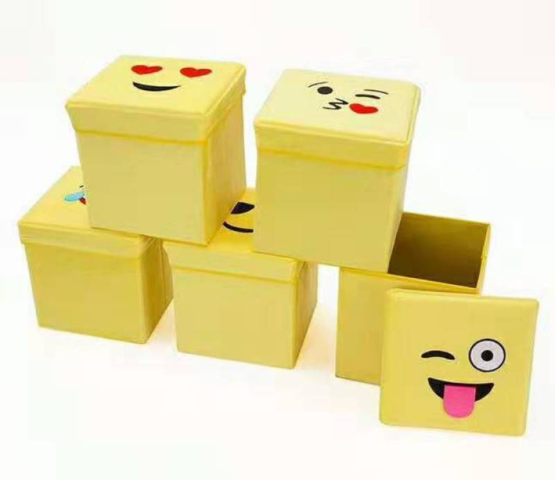 factory direct sales cartoon smiling face flannel square stool folding storage stool storage stool can store clothes can be customization as request 中文版