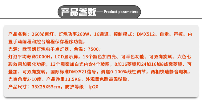 PRO260 beam moving head light 260W pattern light wedding concert bar stage lighting factory direct sales 中文版