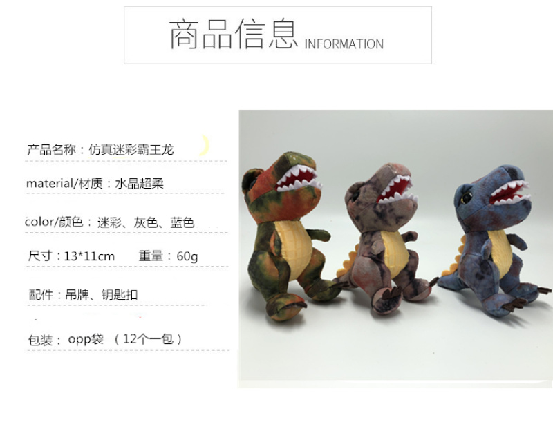 new simulation camouflage tyrannosaurus plush toy keychain pendant boutique grab machine doll first-hand supply 中文版