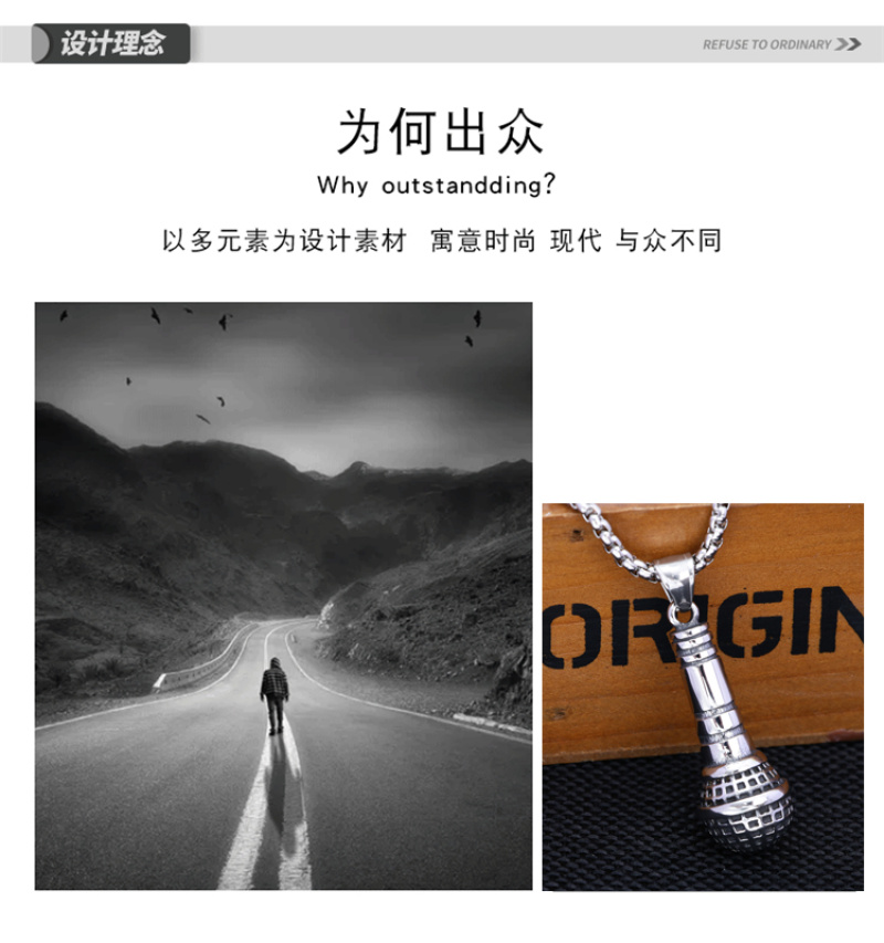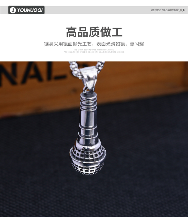 Product Name: Fashionable and Unique Microphone-shaped Pendant for Trendy People - Men's European and American Rock Punk Jewelry and Clothing Collocation