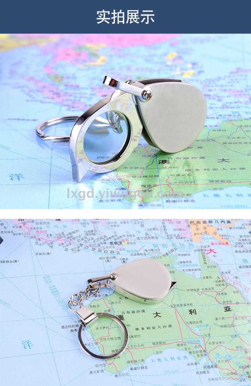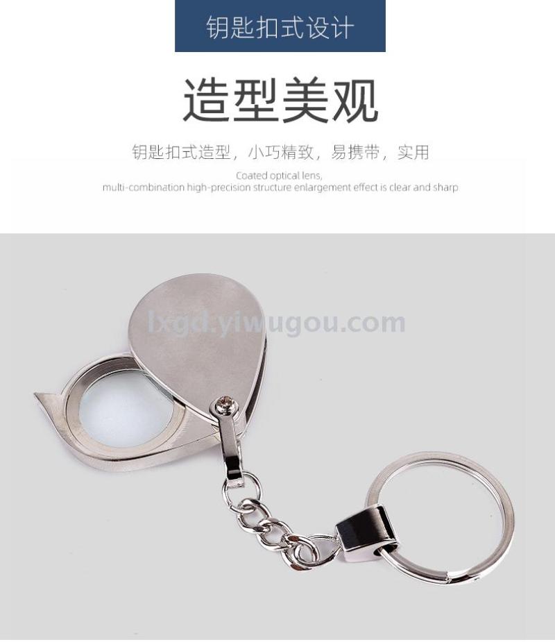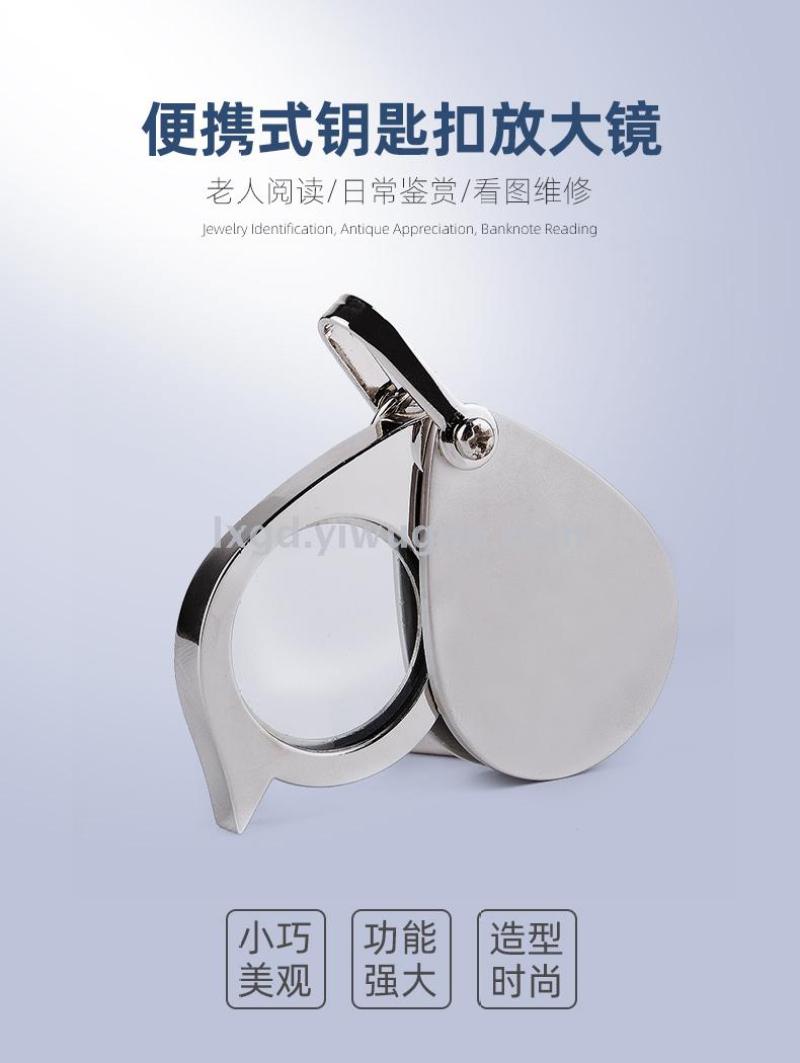 About Product:Keychain magnifying glass mini folding HD reading portable miniature portable compact elderly magnifying mirror, metal material, glass lens, lens size 20mm, conventional 500 pieces