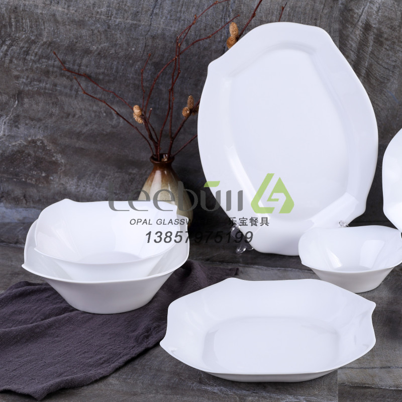 OPAL GLASSWARE Tableware White Jade Porcelain OPAL Glass Square Lace Series set