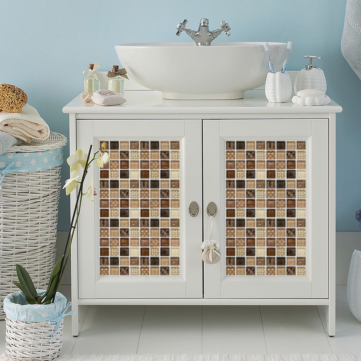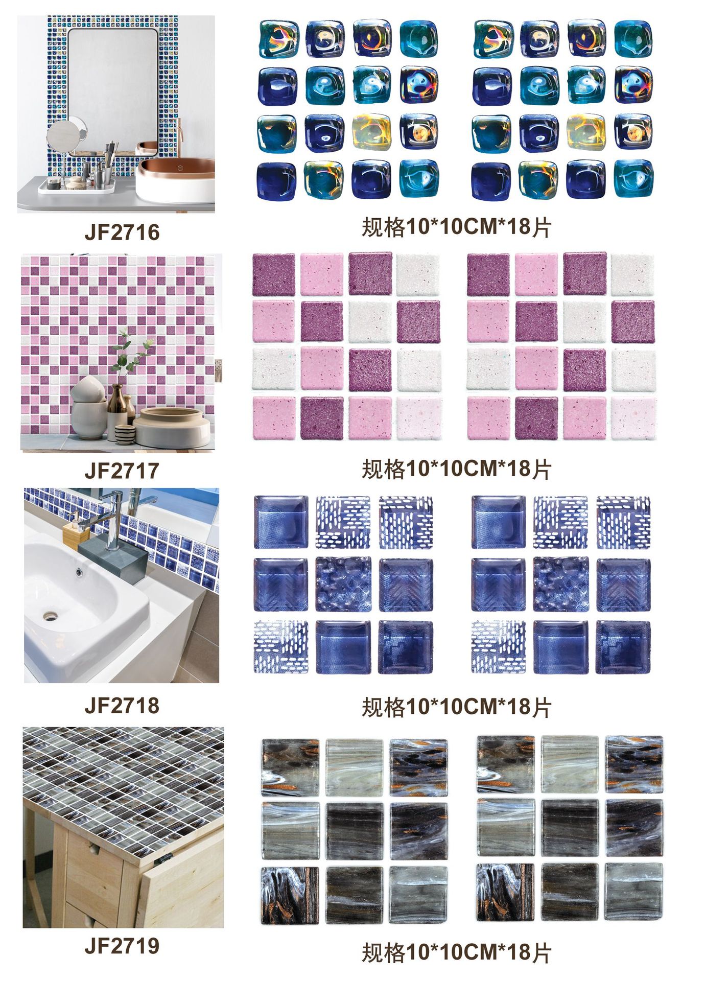 New Mosaic Tile Sticker Foreign Trade Cross-Border Hot Kitchen Bathroom Wall Decoration Waterproof Paste a Set of 18 Pieces