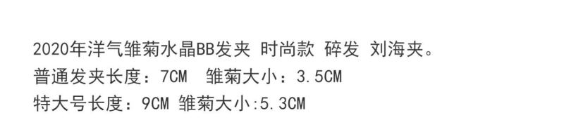 2020 trending girl south korea dongdaemun hair accessory little daisy bb clip side crystal hair clip heavy industry broken hair 中文版