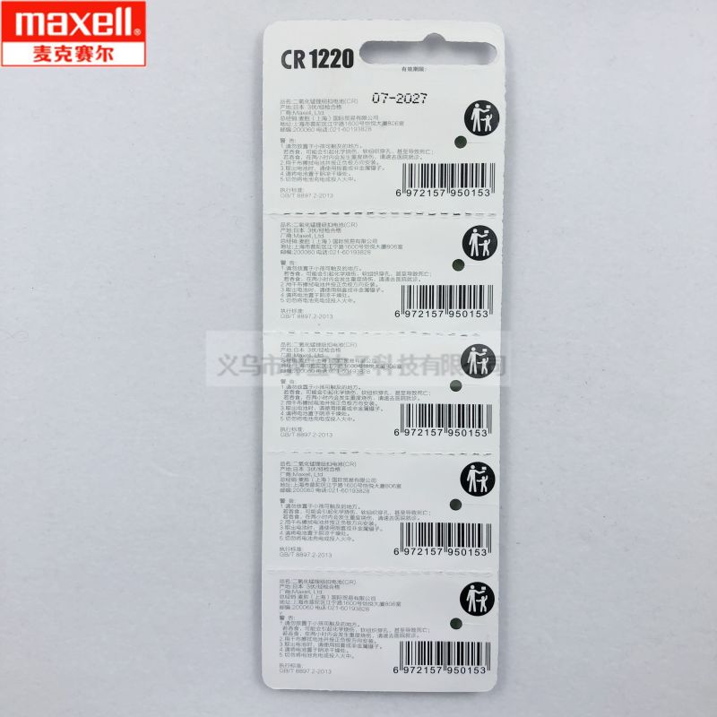 Maxell original genuine lithium battery CR1220 button battery 3V lithium electronic ECR1220 中文版