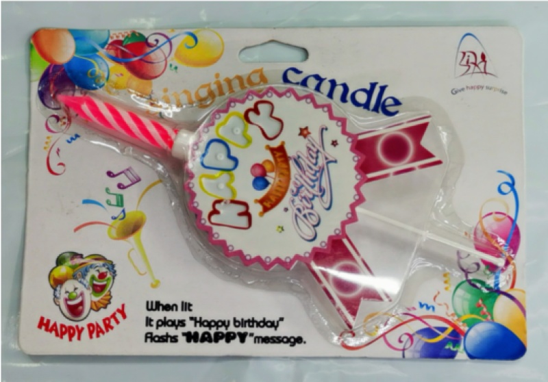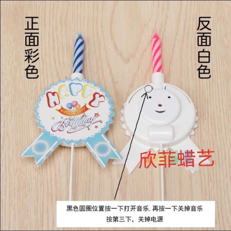 Product Name: Music Candle Brooch Material: Plastic + Paraffin Wax Color: Pink and Blue Product Size: 6x15.5cm Weight per Unit: 35g Packaging: Blister Packaging Quantity per Box: 192pcs Usage: Birthday Party...