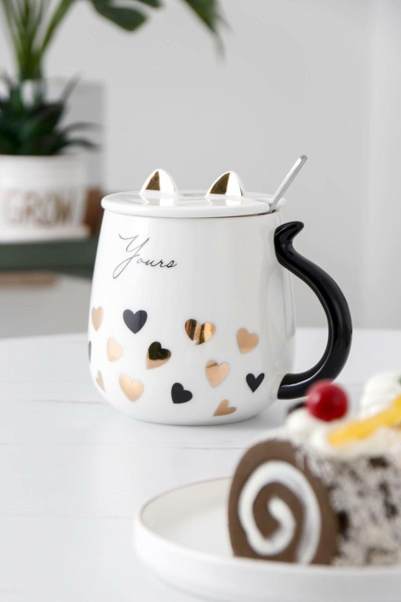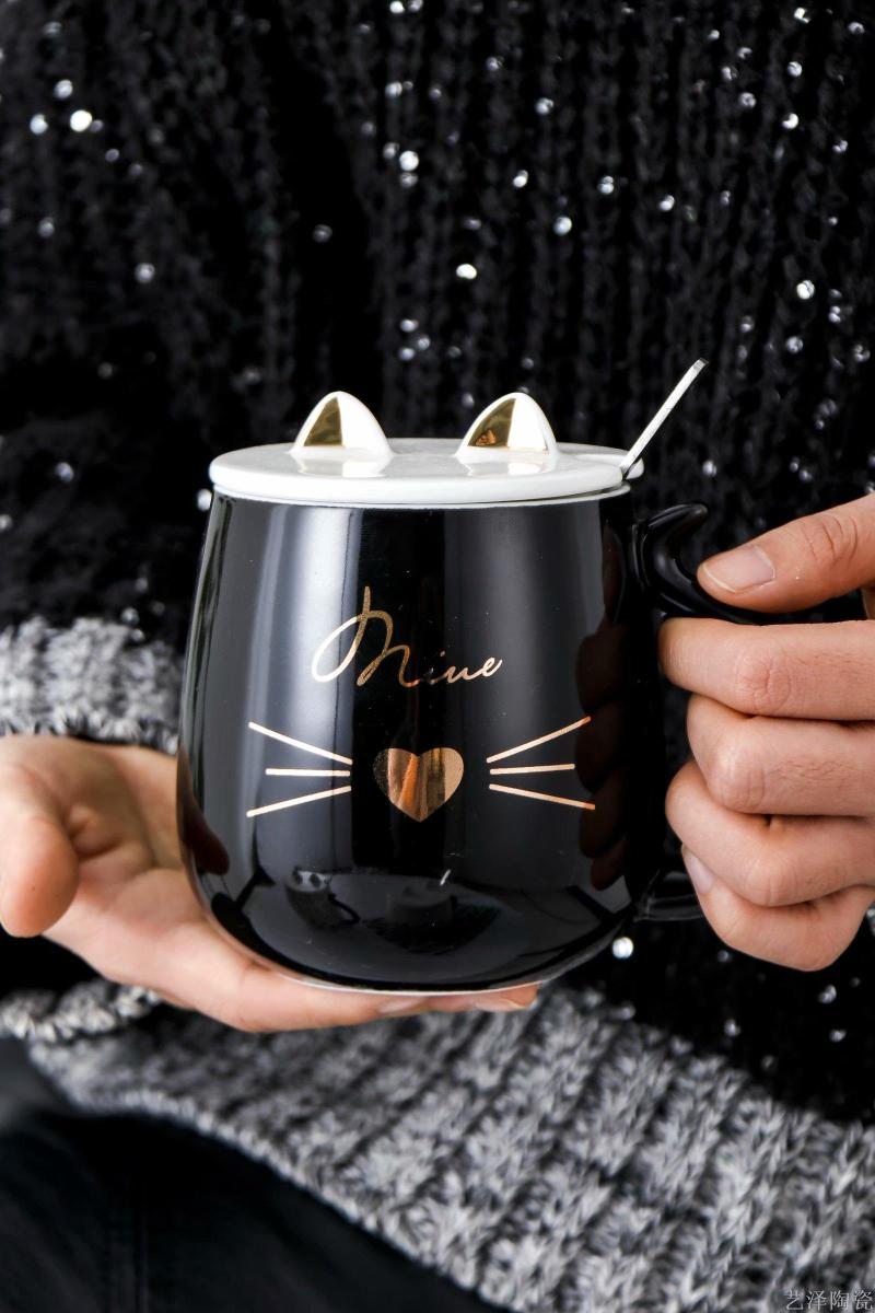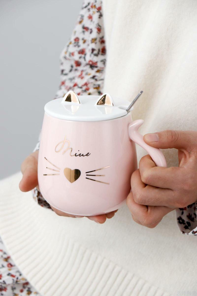 cute kitten painted gold glaze ceramic cup.. 中文版