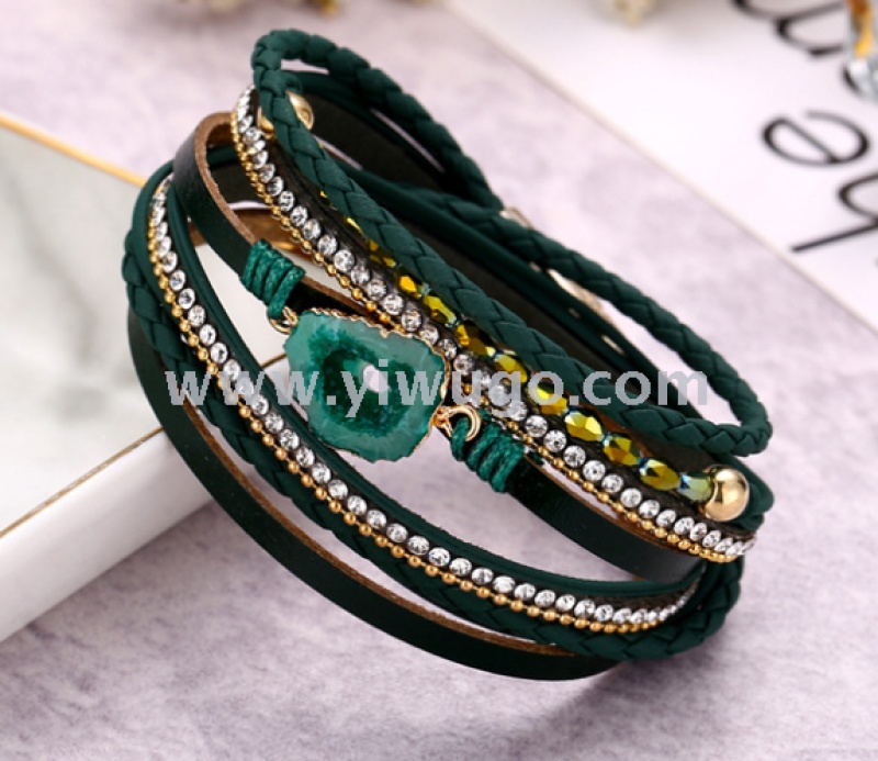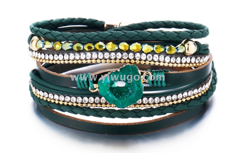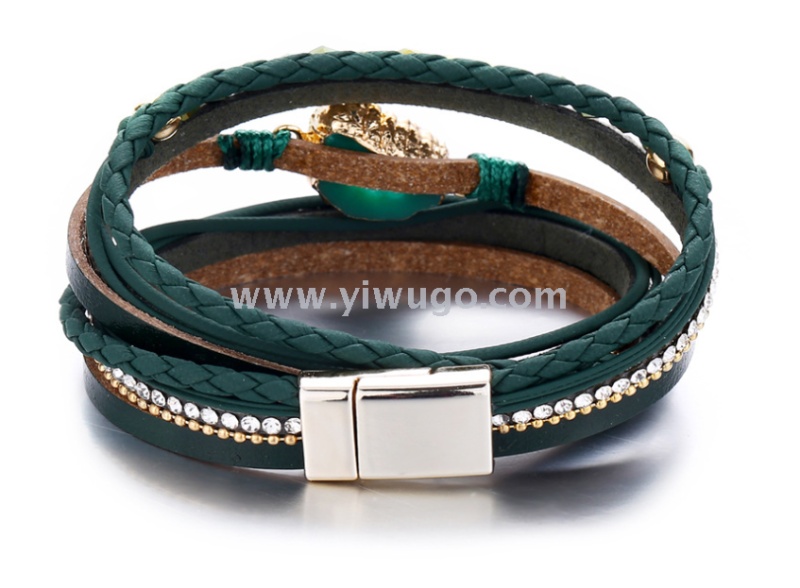 Amazon hot-selling stone accessories PU multi-layer bracelet, retro magnetic clasp leather bracelet, Bohemian braided bracelet