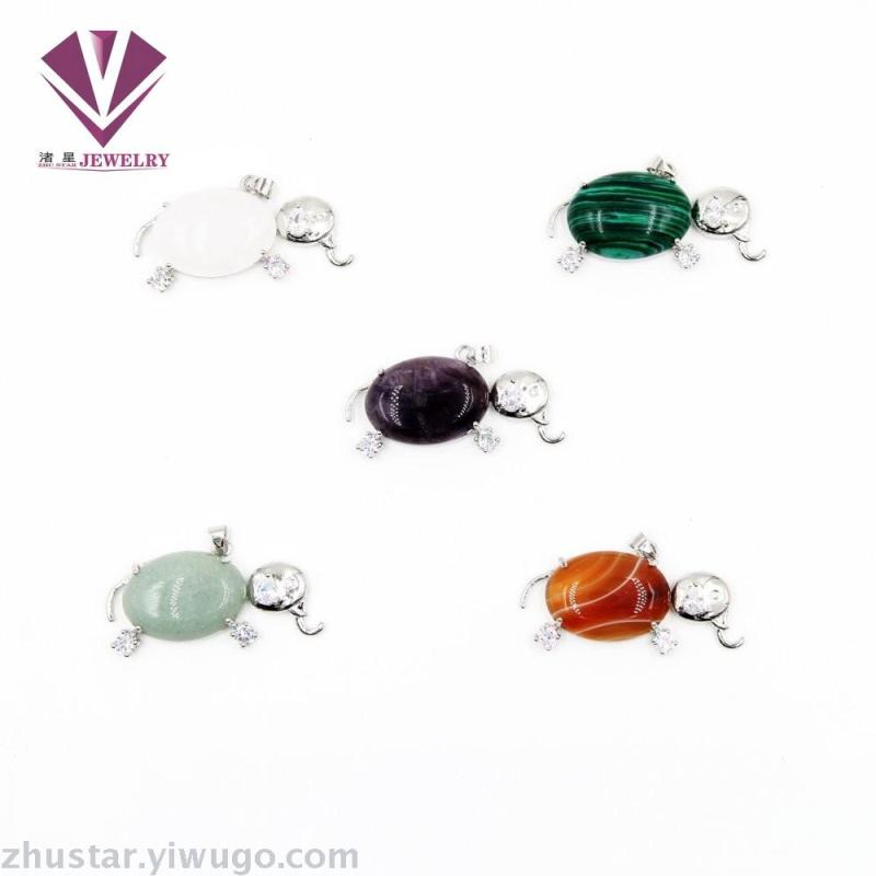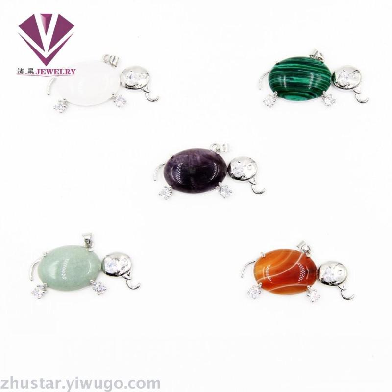 天然石开心大象吊坠,玛瑙,粉晶,紫晶,虎眼石,松石,蛋白石