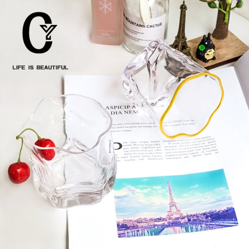 creative golden trim europe and america irregular thick bottom whiskey glass crystal glass household heat-resistant water cup