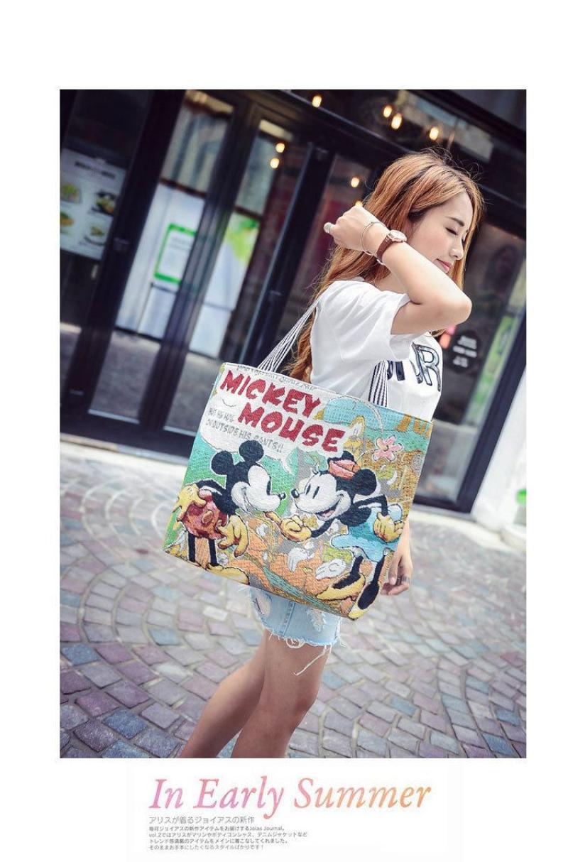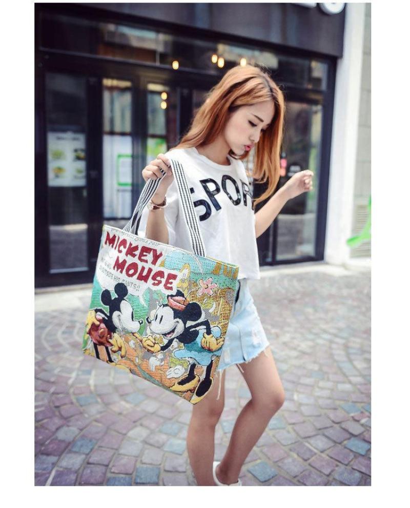 Springsummer new Korean canvas cartoon embroidered bag hand bill of lading shoulder shopping bag female baotou bag 中文版
