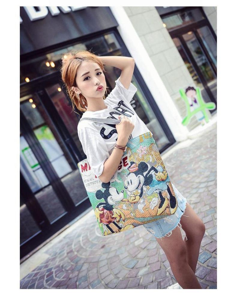 About Product:Spring/summer 2020 new Korean canvas cartoon embroidered bag hand bill of lading shoulder shopping bag female baotou bag