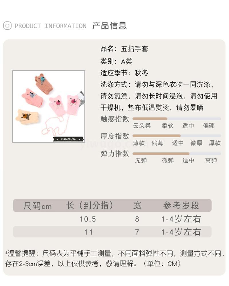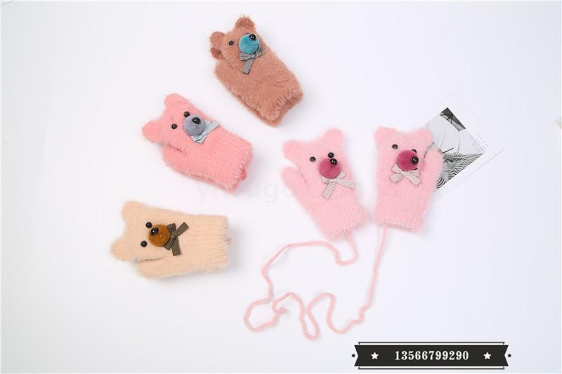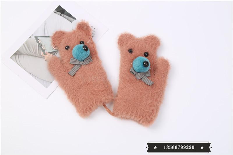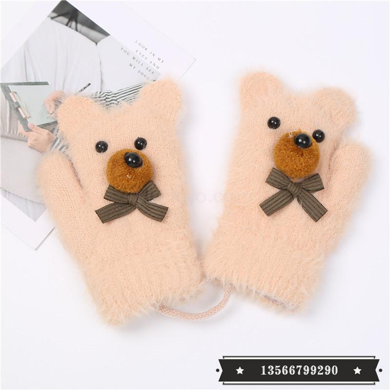 cartoon bear warm gloves winter thick baby gloves girls boys and young children cute gloves